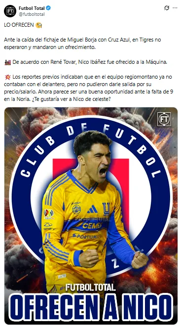 - Oportunidad para Tigres: tras caerse el fichaje de Miguel Borja con Cruz Azul, Tigres ofreció un plan B a La Máquina.