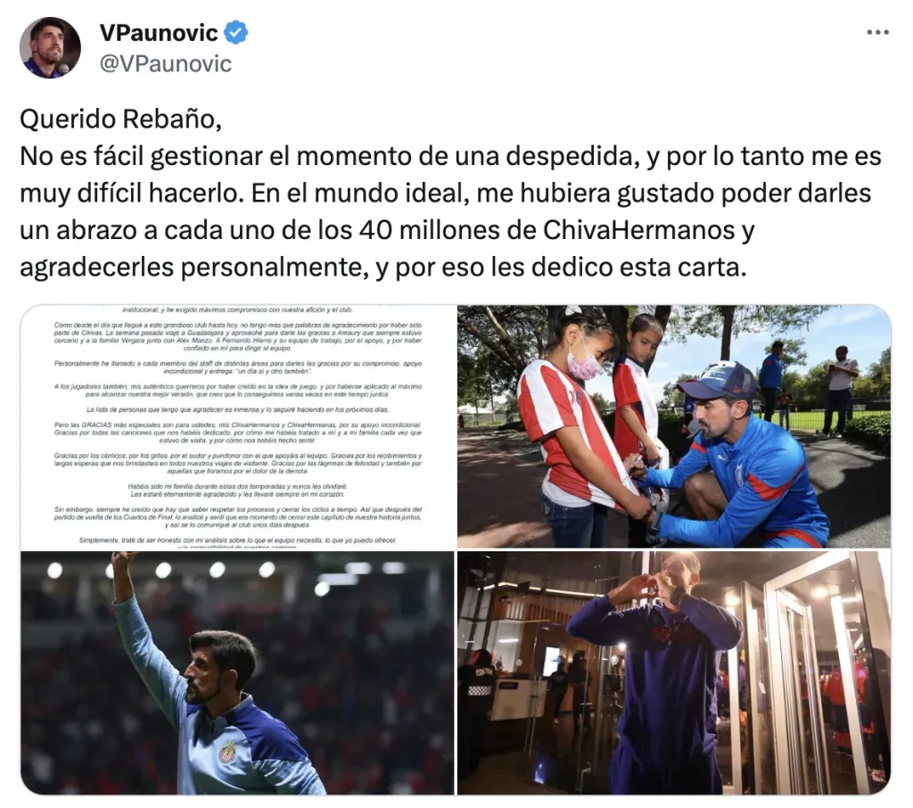 El extécnico de Chivas no dejó pasar la oportunidad de dedicarle una emotiva carta al Rebaño Sagrado, en donde le agradece a todos los que conforman la institución y claro, sin dejar de lado a la afición.