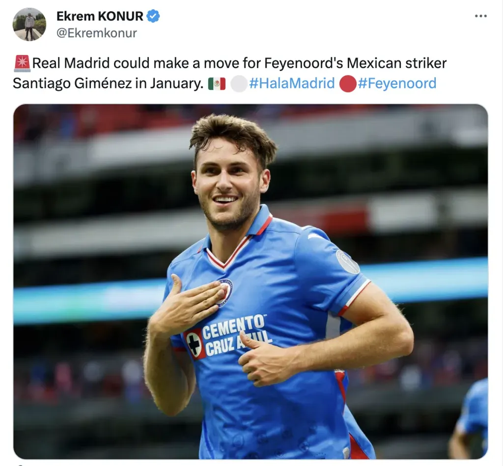 “El Real Madrid podría hacer un movimiento para enero por el delantero mexicano del Feyenoord”