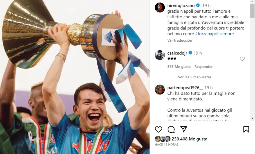 Con dicho mensaje, Hirving dice adiós al equipo italiano. Al cual recordemos arribó hace unos años tras una transferencia de 45 millones de euros.