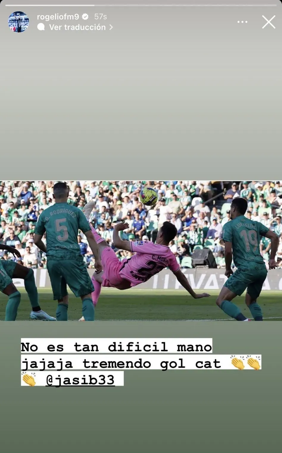 Nada más y nada menos que su ex compañero en Monterrey, Rogelio Funes Mori. El delantero histórico en la Liga MX sabe lo que es marcar goles de chilena y no dudó en mandarle un elogio por su joyita.