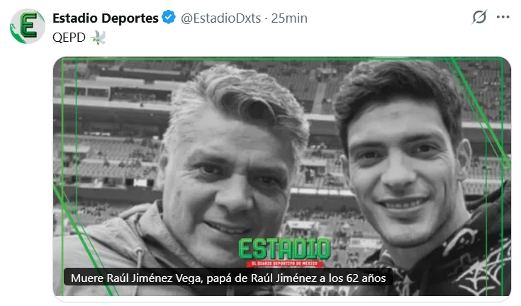 - Murió Raúl Jiménez Vega, padre del delantero Raúl Jiménez, a los 62 años.