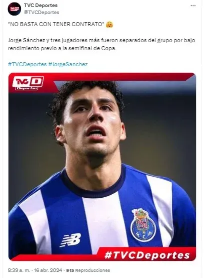 Cuando parecía que Jorge Sánchez vivía un segundo aire con el Porto. El timonel de los Dragones Sergio Conceicao, le dio inesperado y duro golpe al futbolista mexicano. Pues lo habría hecho a un lado por una supuesta baja de rendimiento junto a otros futbolistas del conjunto luso.