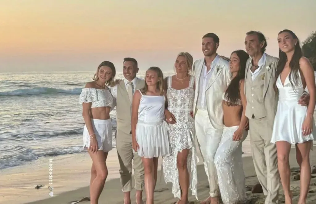 Santiago Giménez y Fernanda Serrano protagonizaron un emotivo capítulo en su historia de amor con la celebración de su boda, a la que han llamado cariñosamente “La Beboda”. La cual tuvo lugar en las paradisíacas playas de Punta Mita, donde la pareja estuvo rodeada de amigos y familiares, incluido el exfutbolista Christian “Chaco” Giménez, quien no quiso perderse este momento especial en la vida de su hijo.