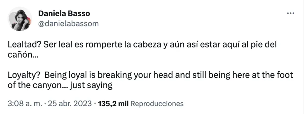 “¿Lealtad? Ser leal es romperte la cabeza y aún así estar aquí al pie del cañón”