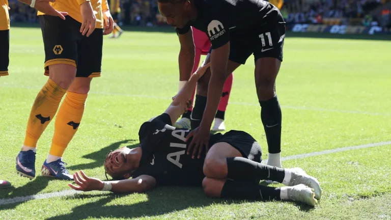 Corría el minuto 56′ del partido entre Wolverhampton y Tottenham cuando Xavi Simons intentó encarar a un defensor rival, teniendo una torcedura de rodilla que lo dejó tendido sobre el césped. El jugador tuvo que salir en camilla del campo.