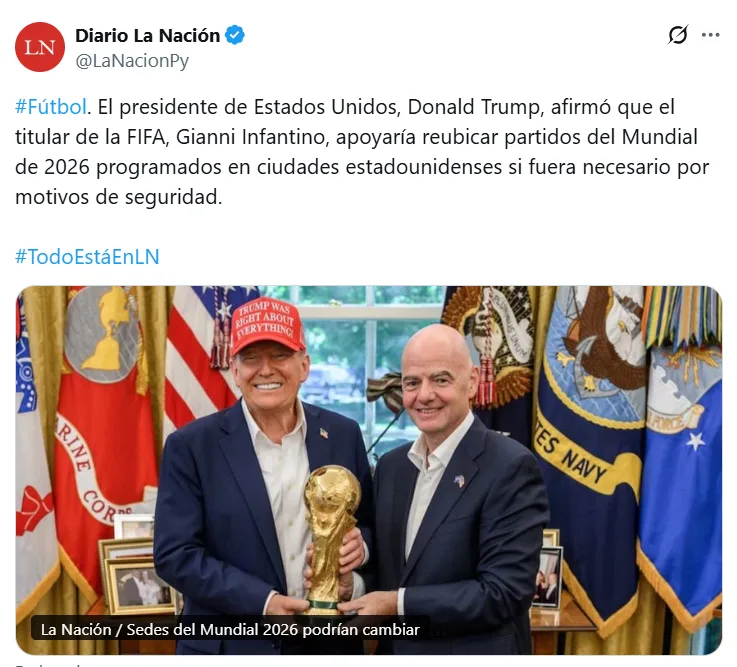 De esta forma solo resta esperar a la respuesta de Gianni Infantino, quien seguramente responderá de forma amable, todo lo contrario a lo que dijo Victor Montagliani, el vicepresidente de la FIFA quien ha sido muy enérgico con sus respuestas a Trump.