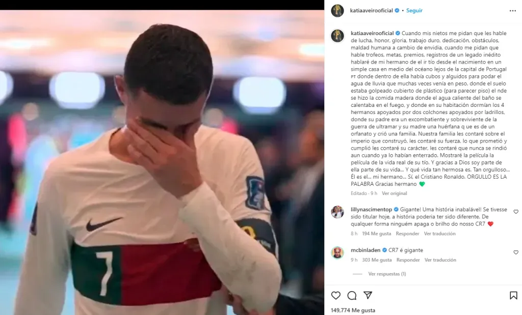 Pero no todo fue furia por la eliminación, Katia también le mandó un mensaje que llega al corazón. Cristiano representa mucho más que un futbolista, es un ejemplo a seguir para muchas personas y su legado permanecerá para toda la vida.