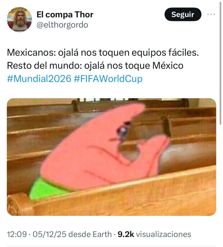 Para que no andes buscando, acá te mostramos los mejores memes del sorteo del mundial 2026 y de la Selección Mexicana.