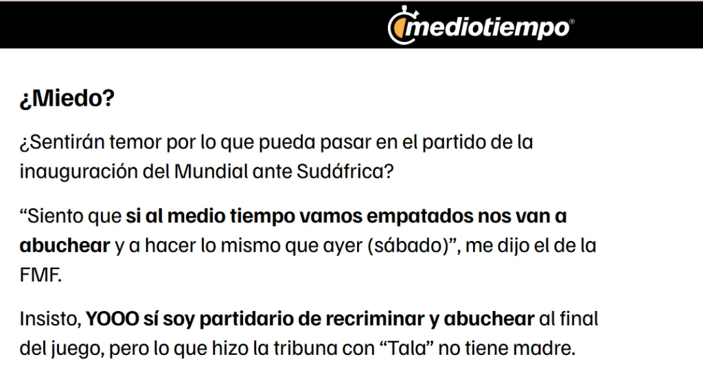 Según la información, en la Federación existe el temor de que una situación similar pueda repetirse durante el partido inaugural del Mundial 2026, en caso de que el equipo no logre imponerse en el marcador. Por ello, buscan evitar que la afición se manifieste nuevamente en contra del equipo.