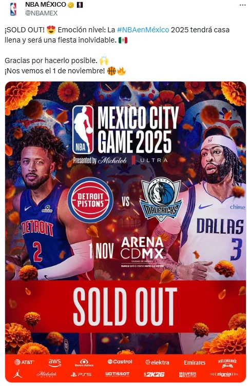 Por medio de sus redes oficiales, la NBA anunció el sold out de la boletería para el partido de NBA Mexico City Game 2025. Por ende, la única forma de comprar los boletos es por medio de la reventa.