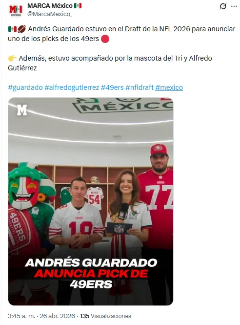 La NFL ha celebrado su Draft 2026 y los mejores prospectos del futbol americano universitario han sido seleccionados por las franquicias en el gran evento anual. La gran sorpresa para el público mexicano fue la aparición del excapitán de la Selección Mexicana, Andrés Guardado.