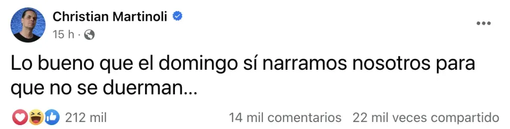 “Lo bueno que el domingo sí narramos nosotros para que no se duerman…”