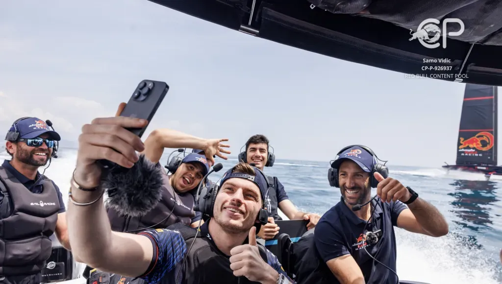 El piloto de Red Bull y dos veces campeón de la Fórmula 1, estuvo a bordo del Chase Boat del equipo, alcanzando velocidades de hasta 100 km/h en las olas del mediterráneo.