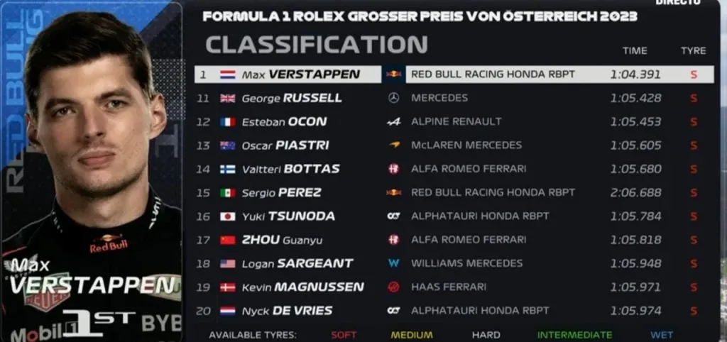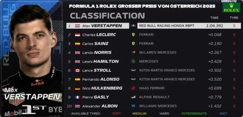 Luego de la actividad de este viernes, la parrilla de salida para lo que se viene el domingo en Austria queda de la siguiente manera: