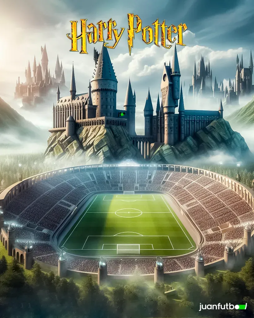 Para empezar, iremos con uno de los favoritos de la gente: Harry Potter. Si los magos que entrenan en Hogwarts fueran aficionados del futbol en vez del quidditch, podríamos ver un estadio de ensueño. Y sí, aunque aquí la magia sea cosa del día a día, la pelota no se mancha, aunque futbol y hechizos no suena tan mal.