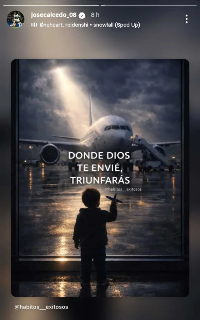 En su cuenta oficial de Instagram, José Caicedo publicó una imagen que resonó fuerte en Ciudad Universitaria. “Donde Dios te envíe, triunfarás”, posteó el mediocampista de Pumas con un avión de fondo. ¿Estará pensando en un nuevo destino?