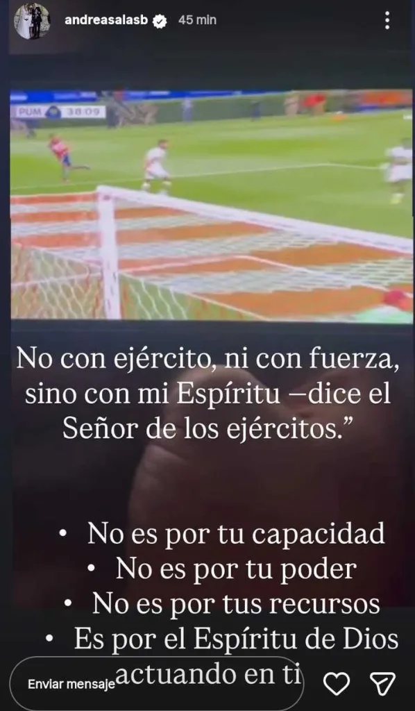Lo curioso es que la esposa de Keylor Navas utilizó el juego de Pumas para enviar otros mensajes vinculados a la Semana Santa de la Iglesia Católica. Además del posteo anterior, también habló sobre la resurrección de Jesús. “No con ejército ni fuerza, si no con mi espíritu, dice el señor de los ejércitos”, publicó.