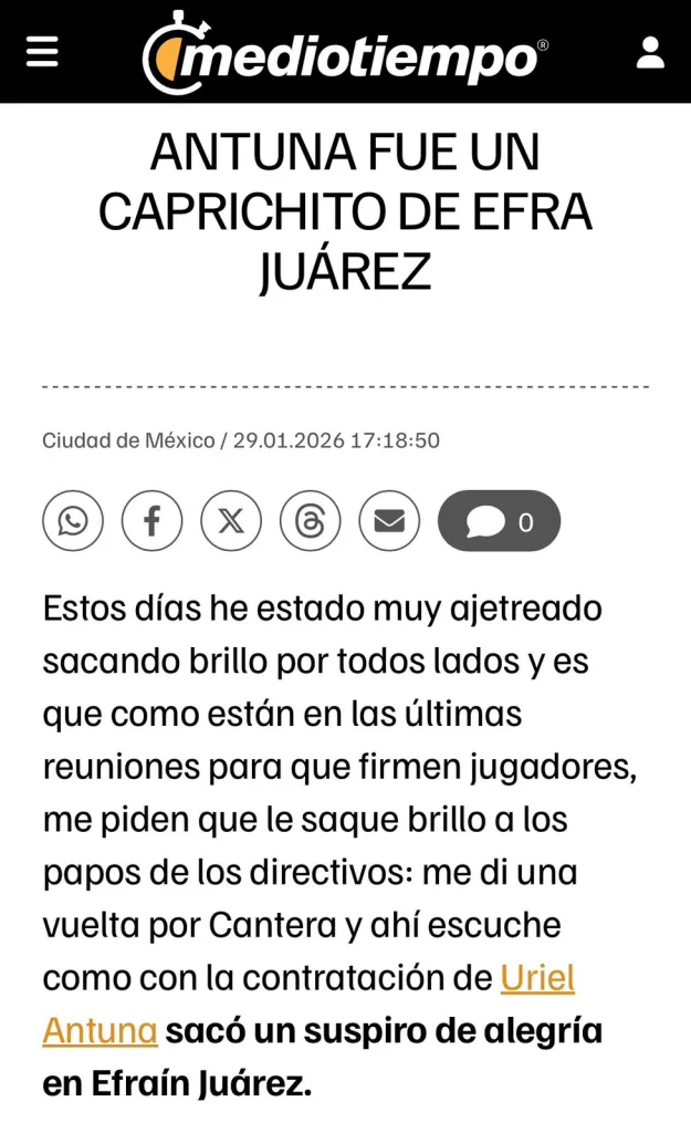 - El fichaje de Uriel Antuna en Pumas habría sido un “capricho” de Efraín Juárez.