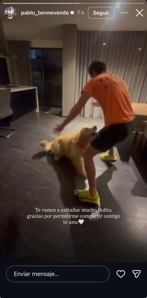 En sus historias de Instagram, Pablo Bennevendo compartió un par de videos en los que informa sobre la sensible pérdida de su mascota. El futbolista de Pumas no dudó en mostrar la tristeza que lo embargan a él y a su pareja ante esta despedida.