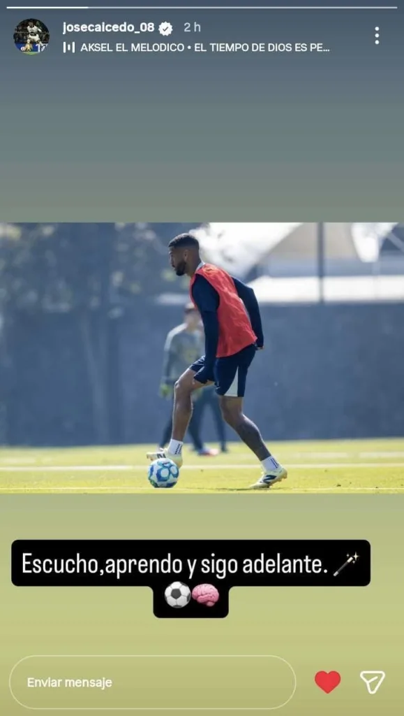 José Caicedo ha utilizado su cuenta oficial de Instagram para publicar un claro mensaje. Allí ha publicado una storie de la última práctica, con la frase, ”Escucho, aprendo y sigo adelante”, junto a varios emojis.