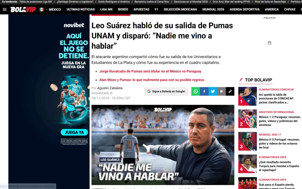 ¿Qué reveló Leo Suárez sobre su salida de Pumas?
