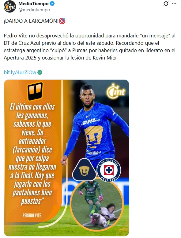 Pedro Vite no se midió y días antes del duelo de Pumas vs Cruz Azul, lanzó un dardo envenenado a La Máquina al abrirles de nuevo una vieja herida que les quedó del torneo Apertura 2025.
