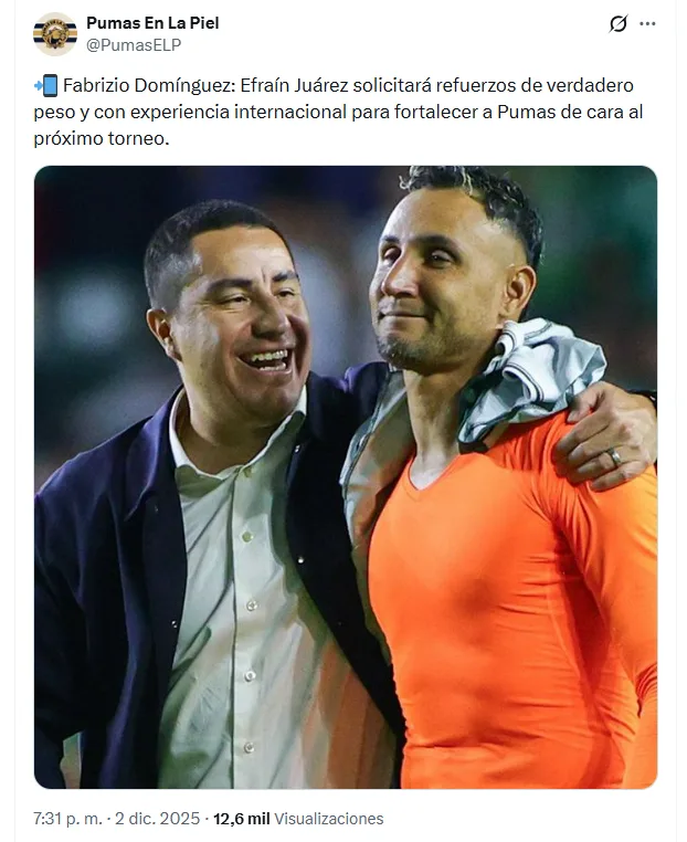 - Efraín Juárez estaría pidiendo a Pumas entre 3 a 4 fichajes para el Clausura 2026.