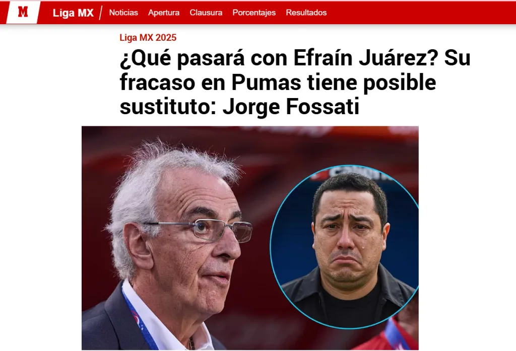 Tras quedar fuera de la Liguilla del Apertura 2025 después de caer terriblemente ante Pachuca, en Pumas habrían tomado una drástica decisión sobre el puesto que ocupa el mexicano, Efraín Juárez. Pues se reportó en las últimas horas que ya están sondeando a su próximo reemplazo: Jorge Fossati.