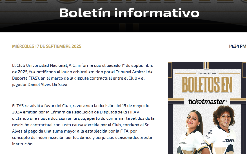 Con esto buscaron una indemnización de 5 millones de dólares por incumplimiento de contrato, y efectos de acuerdos comerciales; y si bien en una primera instancia el caso se desestimó, este miércoles los Pumas compartieron el laudo arbitral del TAS en sus redes sociales.