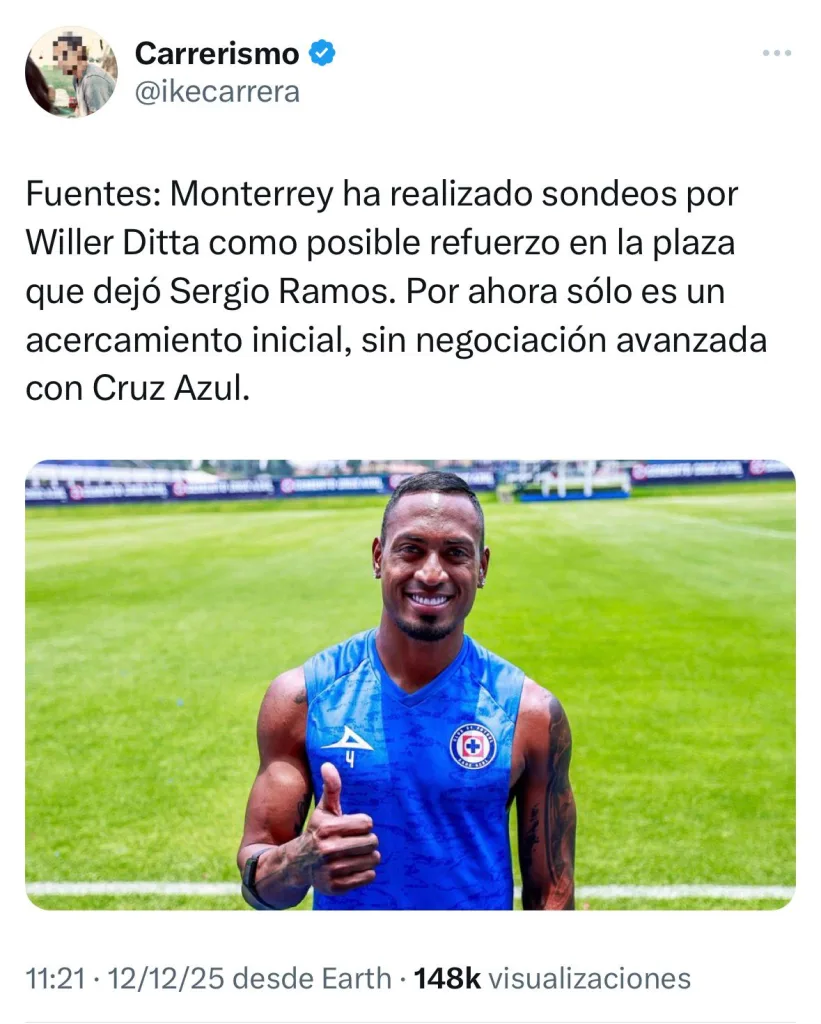 La información de un supuesto interés del conjunto regio por Willer Ditta surgió luego de que el periodista Ike Carrera revelará que el club sondeó el entorno del defensor. Esto, para conocer sus condiciones ante una posible oferta.