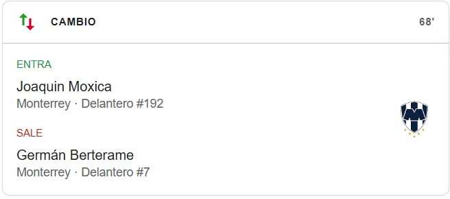 En el duelo de Mazatlán vs Monterrey en el que Germán Berterame anotó un gol para su equipo, se dio algo que es muy poco común ya que el jugador fue sacado de cambio al minuto 68, luego de que se revelara que el Inter de Miami lo quiere para jugar con Lionel Messi.