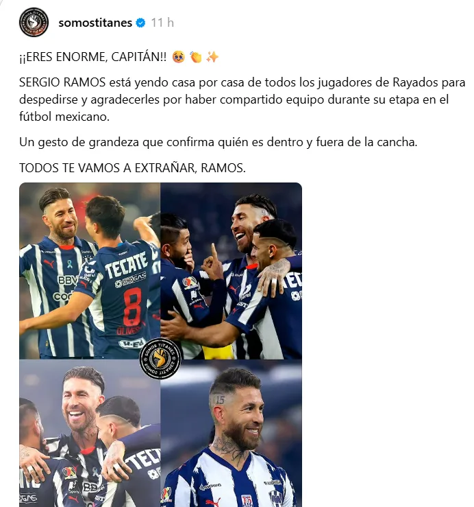 De acuerdo con los amigos de Somos Titanes, Sergio Ramos demostró tener no solo un gran talento dentro de la cancha, sino también una calidad humana sin igual. Pues el futbolista español se habría despedido de cada uno de los jugadores de Rayados de Monterrey visitando casa por casa de los futbolistas.