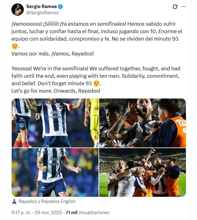 A pesar de que Rayados de Monterrey consiguieron salvarse de milagro y pasar a Semifinales de último minuto. Tanto Sergio Ramos como sus compañeros osaron burlarse de las Águilas del América tras eliminarlos en casa durante los Cuartos de Final del Apertura 2025.