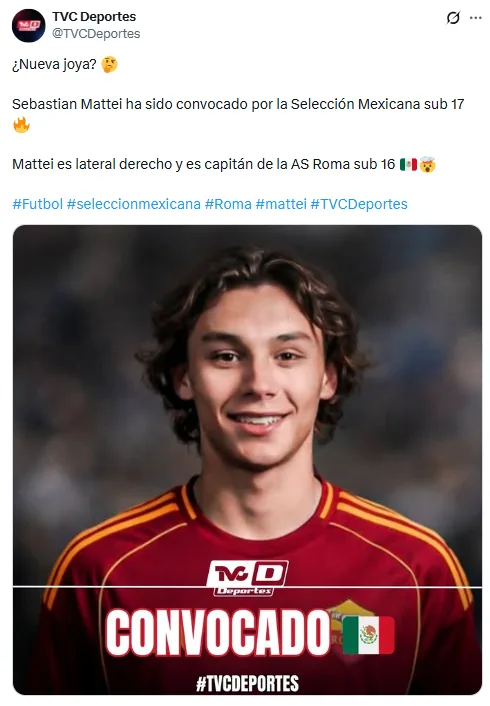 La Selección Mexicana continúa trabajando fuertemente en el scouting, sabiendo que hay muchos jugadores de sangre mexicana cumpliendo con su proceso formativo en el extranjero. Este es el caso de Sebastian Mattei, joven talento que juega para AS Roma.