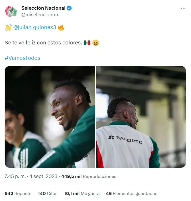 Mucho se ha hablado de que mi Julián Quiñones no debería portar los colores de mi hermosísima Selección Mexicana. Y la realidad es que podrían equivocarse, pues le queda ¡BELLÍSIMA!