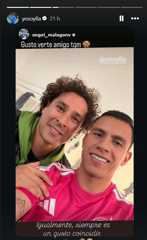 Por si fuera poco en la misma serie de stories el jugador apareció en dos junto a Luis Ángel Malagón, el actual portero del América, equipo del cual también salió Francisco Guillermo Ochoa.