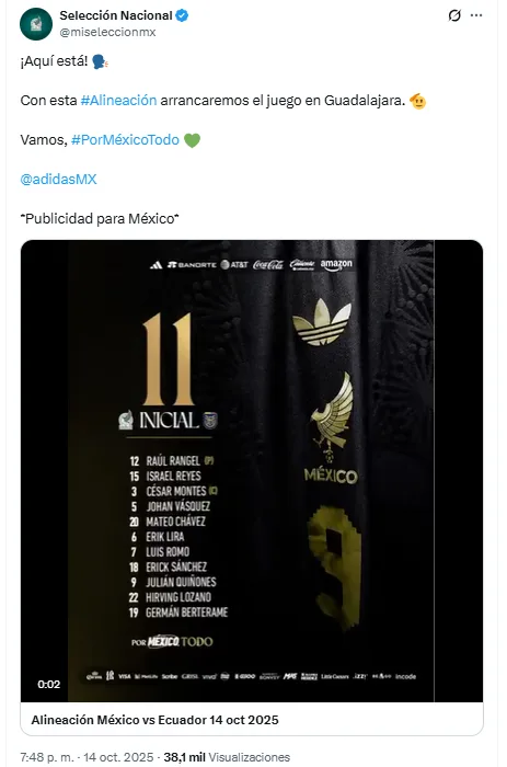 Pero estas situaciones es lo que ha provocado que Javier Aguirre tomara la drástica decisión de usar casi puros suplentes para este duelo ante Ecuador. Sin importar que vienen de una dolorosa derrota ante Colombia, pero quiere probar combinaciones que puedan sacarlos de un apuro si algo se les complica en el Mundial 2026.