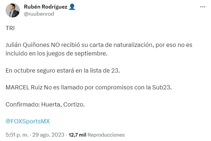 Resulta que nuestro compa de Fox Sports, Rubén Rodríguez reveló el verdadero motivo por el que Quiñones de plano no fue considerado por Jaime Lozano en esta lista que apenas dieron a conocer ayer.