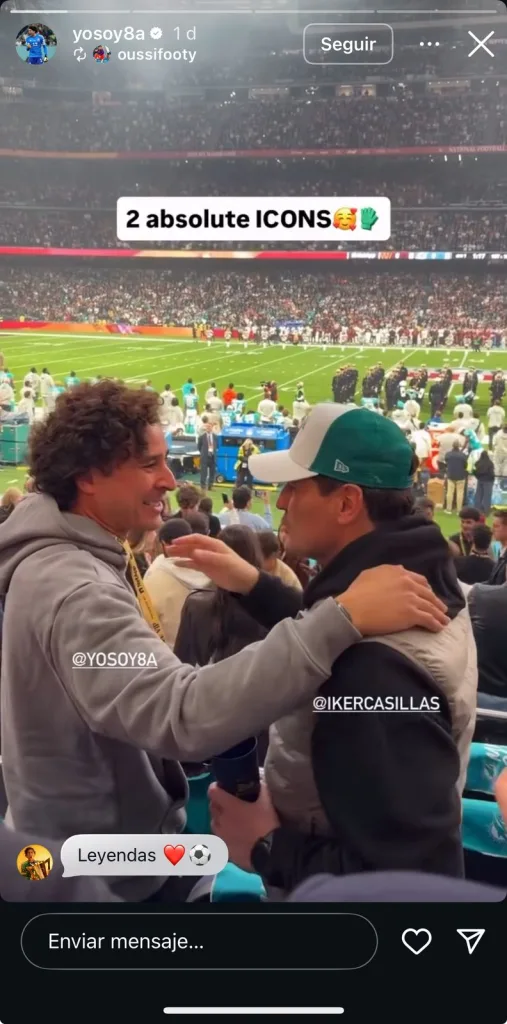 Así dejó constancia en sus historias de Instagram, donde hasta presumió su encuentro con Iker Casillas en las tribunas. Así que preocupado no se veía, y mientras la Selección Mexicana era abucheada en Torreón, Memo Ochoa se lo pasaba de lo lindo.