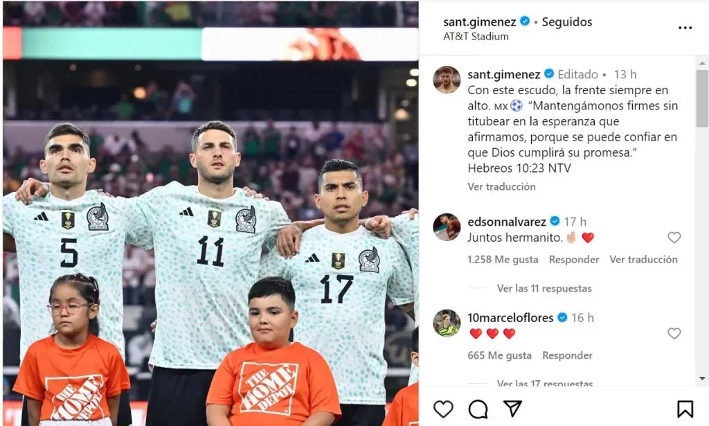 Resulta que mi Santi usó su cuenta de Instagram para postear algunos palabras, las cuáles estuvieron acompañadas de una foto de él durante el himno mexicano, previo a que arrancara este partido.