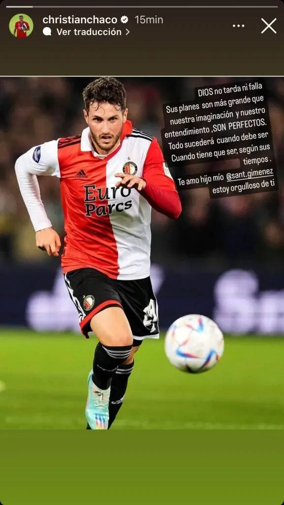 Después de darse a conocer a los 26 jugadores que estarán en Qatar, el Chaco colgó una historia en su Instagram. Con la imagen de su hijo, Christian le mandó un mensaje a Santi diciendo que tenga paciencia, alguien tiene un mejor plan para él y vendrán muchas cosas mejores para Bebote.