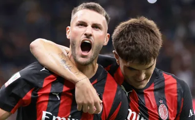 Durísima patada de Santiago Giménez en el inicio del partido de AC Milan contra Atalanta.